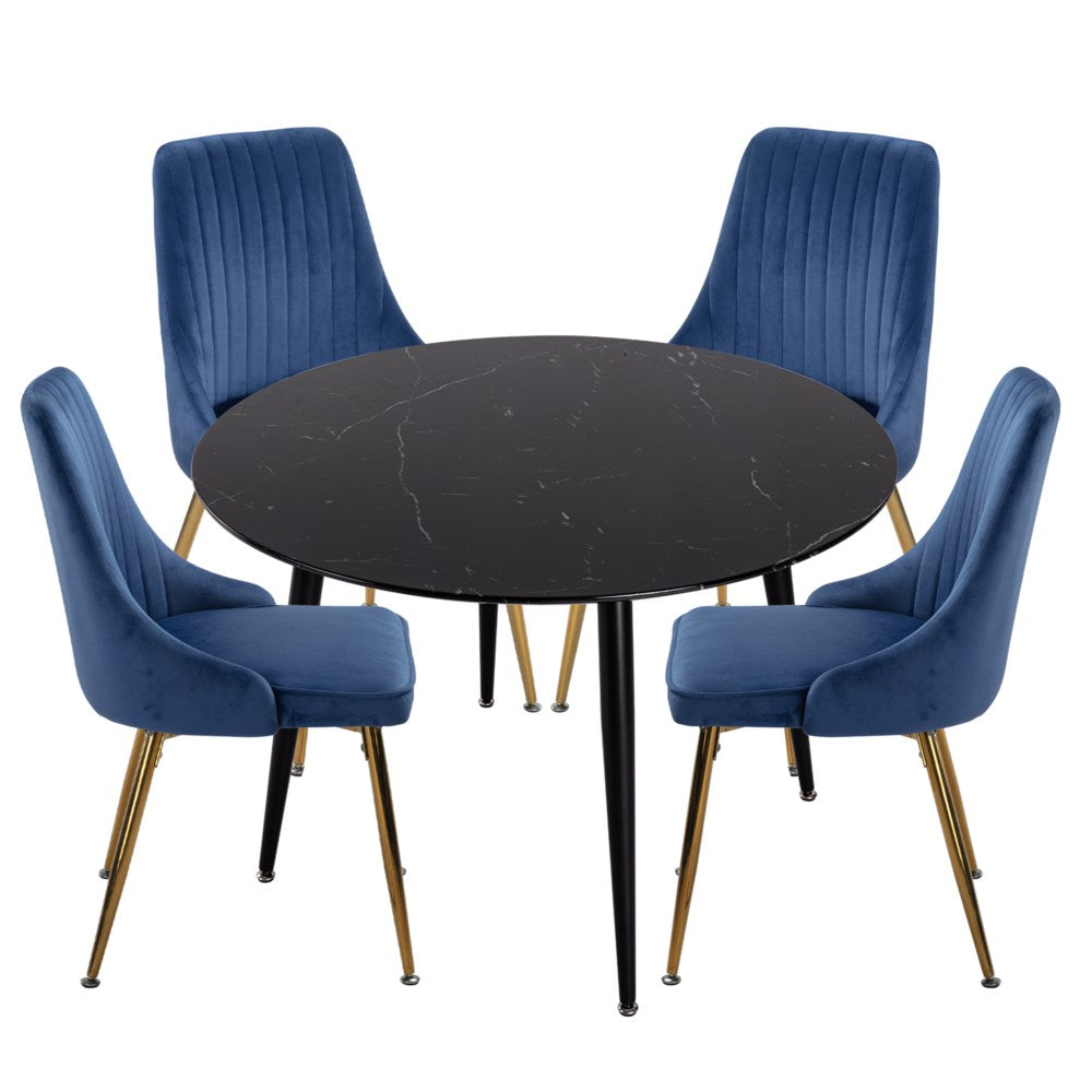 Paris Black Velvet  & Gold Polished Steel Upholstered Dining Chairs Tufted Back - Set of 2