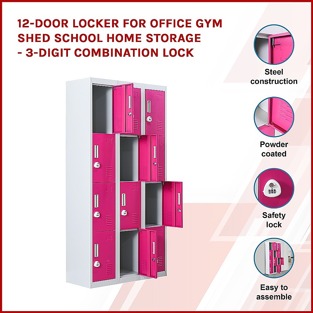 12-Door Locker for Office Gym Shed School Home Storage - 3-Digit Combination Lock