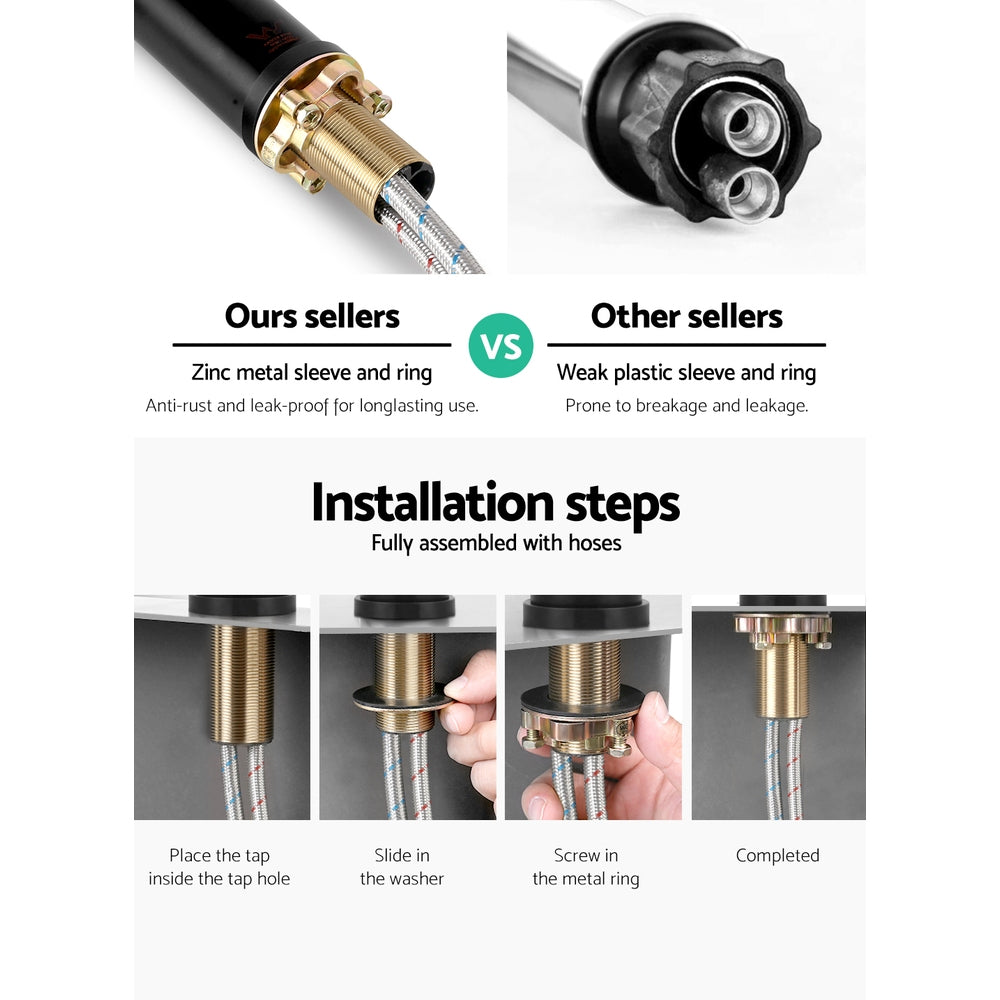 Give your bathroom a sleek makeover with the Cefito Mixer Tap. Crafted from a high-quality mix of 304 stainless steel, solid brass, polished chrome and ABS plastic, our Mixer Tap is meticulously designed to increase efficiency and enhance flexibility with any washing done in your sink. It also features a 35mm drip-free ceramic cartridge that ensures longlasting performance for absolute durability and reliability. Suitable for both hot and cold water use, the Mixer Tap is also Watermark-certified and WELS-approved to comply with stringent health and safety standards in plumbing and water supply products as well as current Australian standards. Easy to install, the Cefito Mixer Tap will fit any sink with a tap hole diameter between 35mm and 38mm.