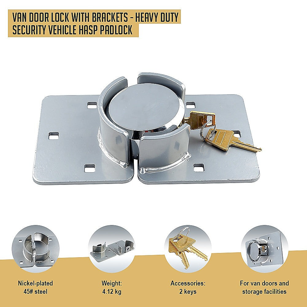 With heavy-duty 45# steel construction, this nickel-plated lock is perfect for not only your van, but your garage, your shed, or storage buildings at your facility. For tradesmen and others who keep equipment, tools, and goods, this sturdy lock is a must-have.
