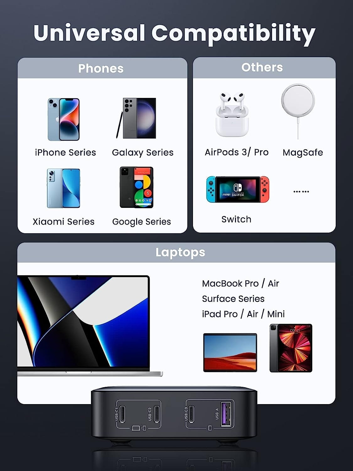 Compatible with MacBook Pro, MacBook Air, Dell XPS, iPhone 14/13/12 series, Galaxy S23/S22 series, iPad, Steam Deck, and more!