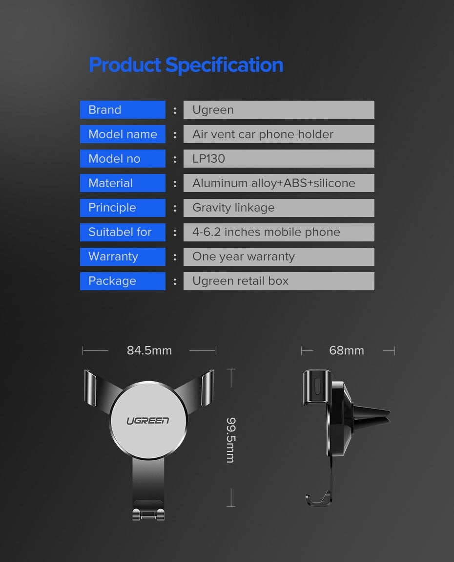 The Ugreen holder does not require the troublesome adjustment of the accessory to the size of the phone . Just put the device on it and the jaws will close automatically.