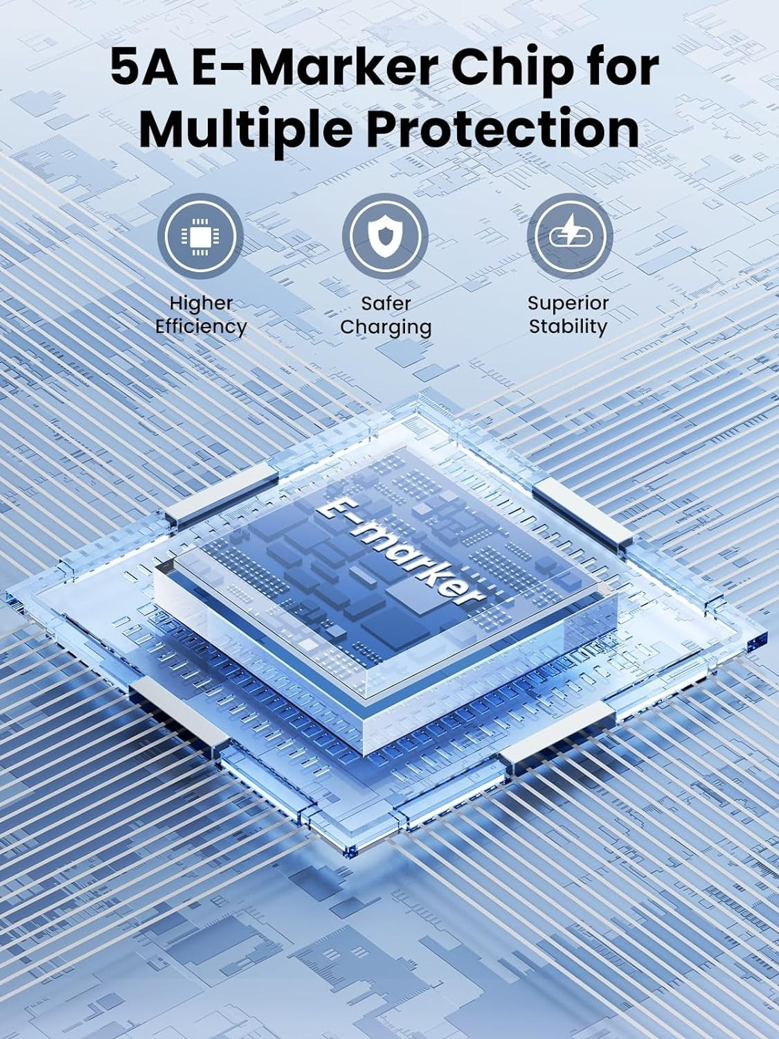Solid and durable nylon braided cable ensures longer service life up to 10,000 bends. Double-sided USB C connectors with overmolded strain relief are designed for frequent insertions. Aluminum housing, high-purity copper wire, triple-shielding will keep long-lasting fast charging performance.