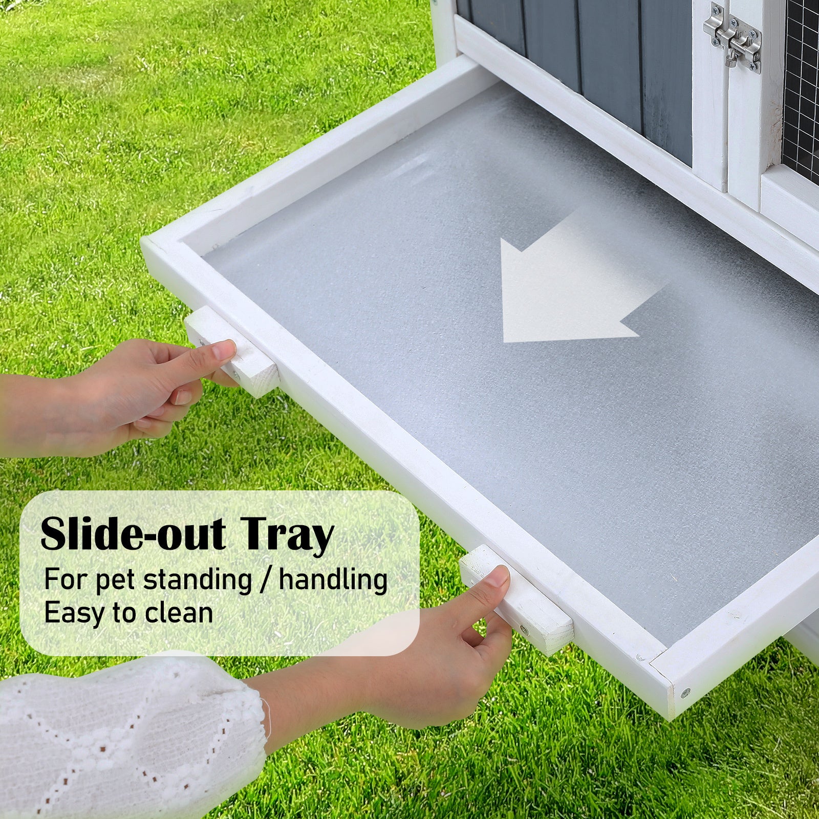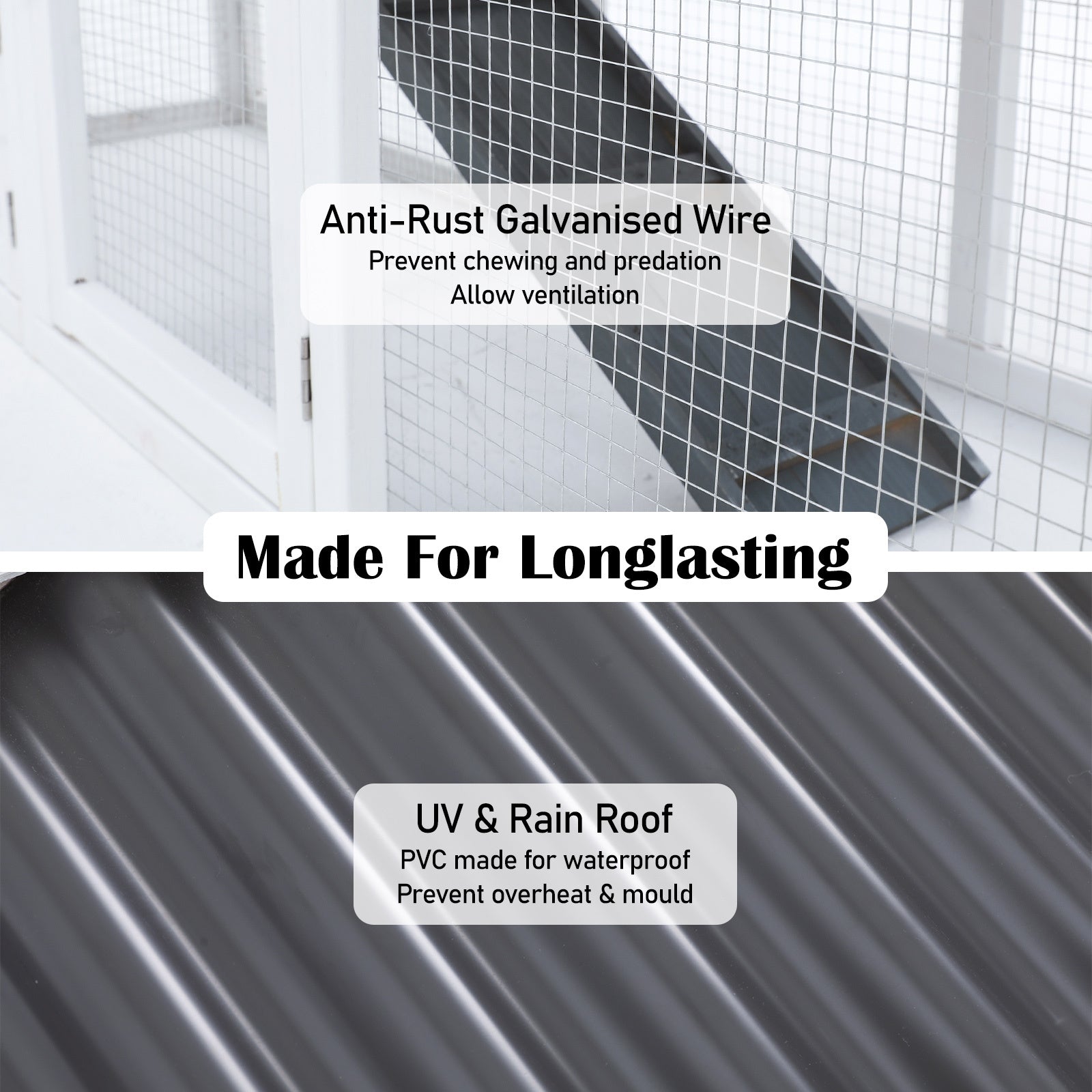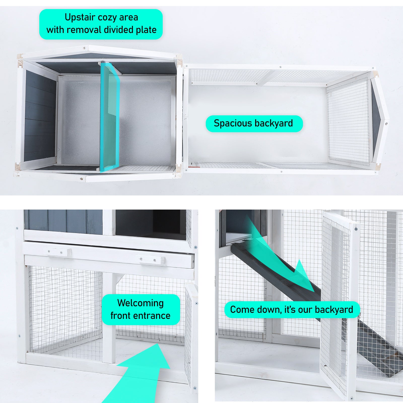 With our Paw Mate GRACIE pet hutch, you can provide your pets with plenty of space to run and play, ensuring their protection and your peace of mind. Made from non-toxic fir wood and galvanised mesh wire, this hutch is durable, predator-proof, and insect resistant. Its spacious double-level enclosure allows for sufficient open ground floor space for grazing and exercise while hopping up and down the ramp can strengthen your pets' muscles.