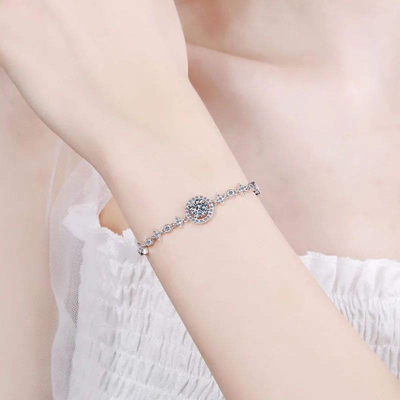 1 Carat Morganite Sterling Silver Bracelet | Celestial-inspired Design