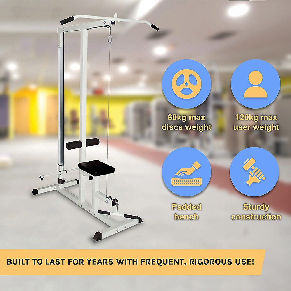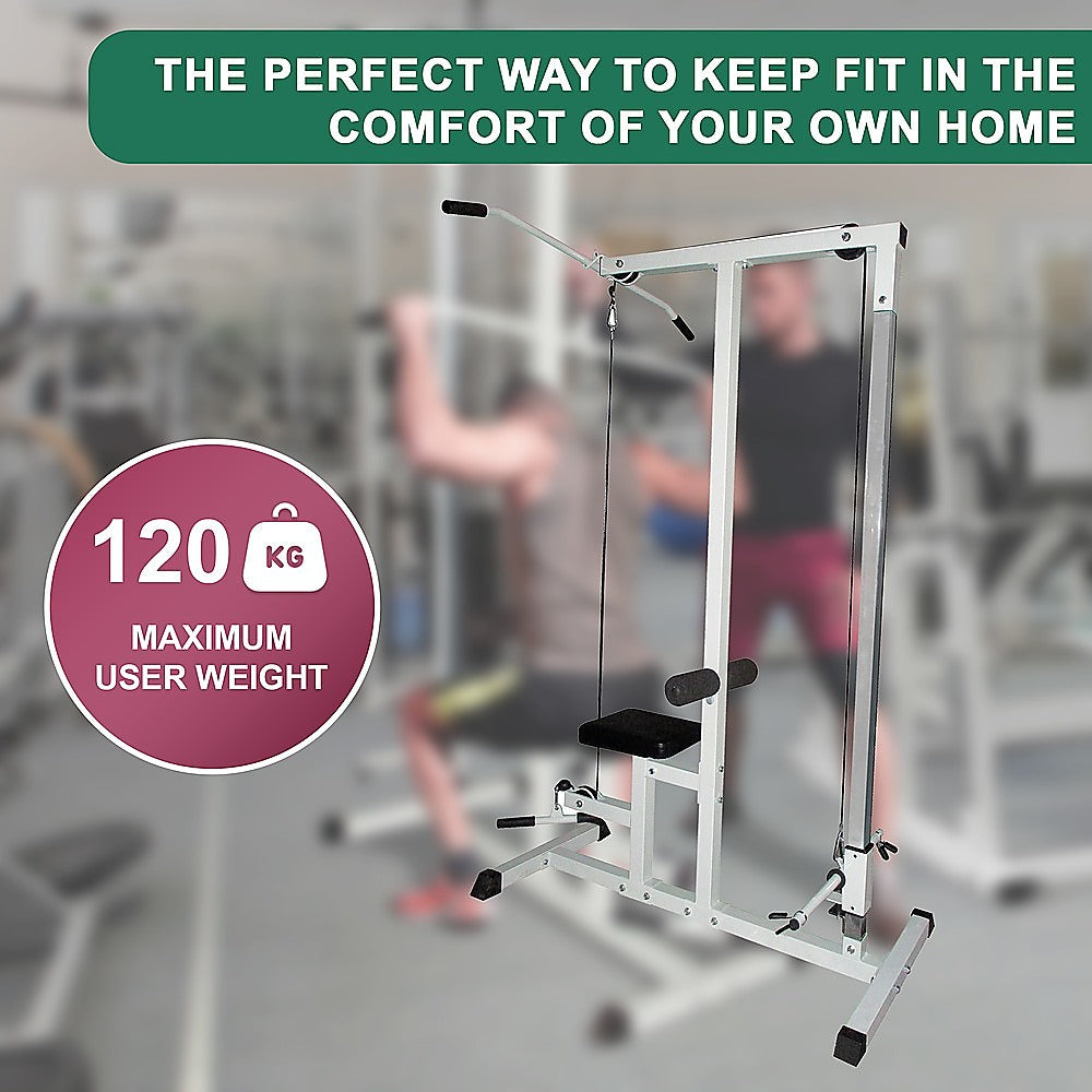 When you're serious about your fitness, but don't have a huge home gym to train in, this compact home fitness gym from Randy & Travis Machinery is the perfect solution. With a padded bench that allows you to train in comfort, this gym features a cable and bar, allowing you to do pulldowns and rowing exercises right in your own home.