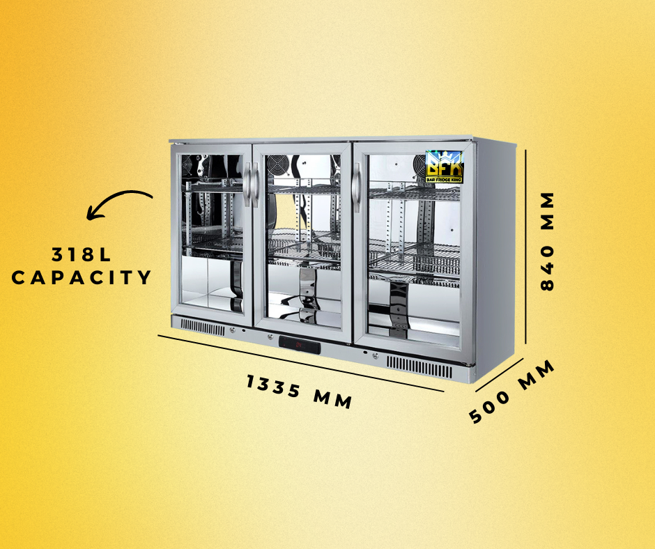 Pre Order the Newest Edition to Bar Fridge King's Under Counter Bar Fridge Collection - The 318ltr Stainless Steel 3 Hinged Doors Commercial Bar Fridge