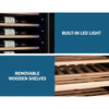 Need a reliable way to store your wine collection? Look no further than our Devanti Wine Cooler. Utilising the latest high-precision compressor cooling technology, our wine cooler ensures your favourite vintages are well kept at their recommended temperatures with its circulated cool air. The cooler has a dual zone system with two separate temperature-controlled zones, ensuring perfect cooling temperatures for both white and red wines. The temperature can be set between 5°C and 13°C for the upper zone (which is suitable for dry white and sparkling wines), and between 12°C and 18°C for the lower zone (which is suitable for red wines). The digital control panel makes for easy temperature adjustments while the built-in LED lights help you to see your wines in the best light. The stylish design stores up to 128 bottles of wine in a neat and tidy wood shelving system. Better still, the double-glazed glass door is UV-resistant and provides excellent insulation. The ensemble works quietly and efficiently and has a built-in lock for total peace of mind. Suitable for both home and commercial use. Treat your vintage collection with the care it deserves - invest in a Devanti Wine Cooler today.