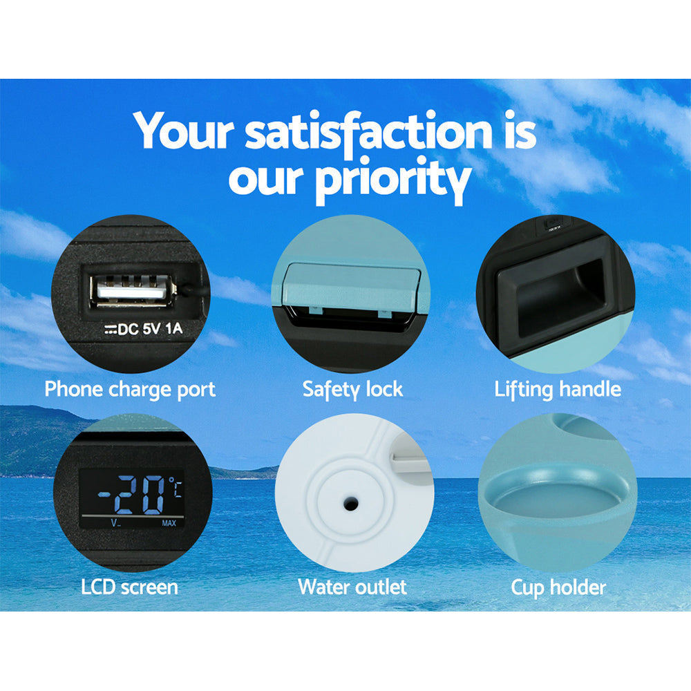In the market for a portable fridge or freezer? Our exceptional Glacio Portable Fridge/Freezer is one cool device with extraordinary performance. Perfect for use on the road or indoors, the fridge easily plugs into any 12V, 24V or 240V power point for the powerful compressor to kick in its cooling prowess. A simple LCD display with even simpler operational setting allows you to start the refrigeration process easily: just turn on the power, set the temperature, and the built-in microcomputer will do the rest. The 55W compressor is very energy-efficient, about 1.32kWh for every 24 hours of use. When running on DC power, the battery has a 3-stage battery charging protection that cuts off charging once the voltage setting is attained to ensure longer-lasting battery life. The fridge has plenty of space for all your food and drinks, and you can change the compartment size depending on your needs with the removable insulation board. The heavy-duty exterior is designed to handle all the knocks and bumps of a road trip and comes with a USB port, safety locks, cup holder and a lifting handle for convenience. With so much going for it, our Glacio Portable Fridge/Freezer is surely your choice of a reliable cooler for all your outdoor (or indoor) escapades.