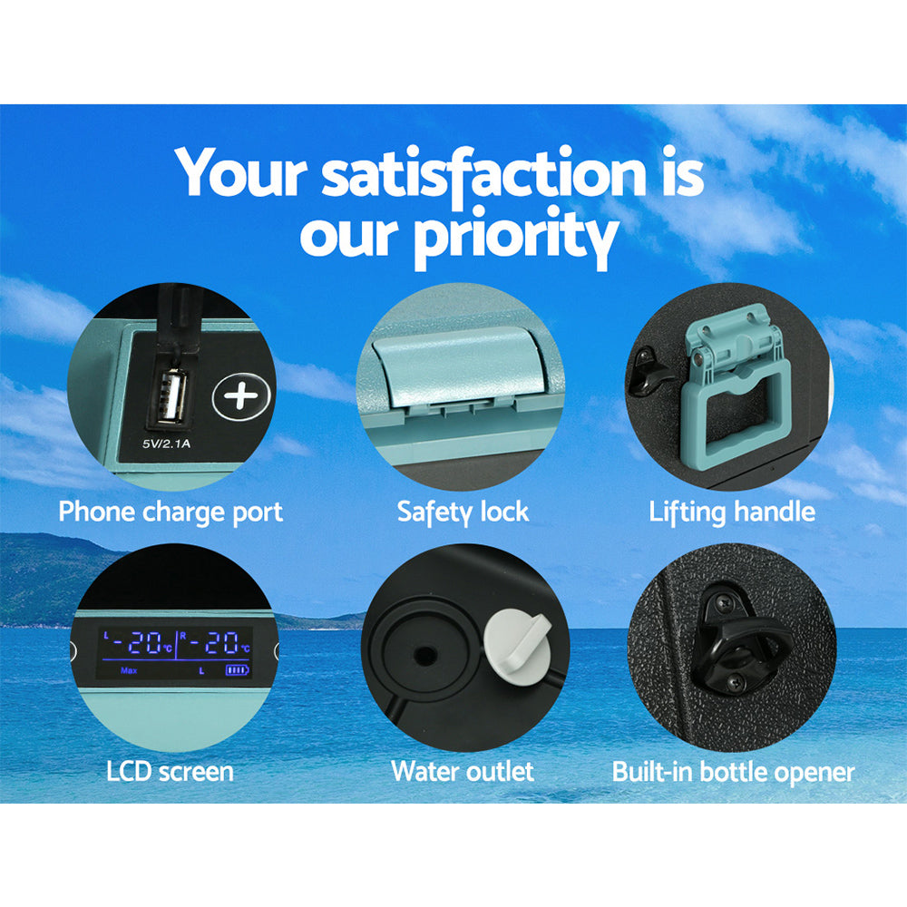 In the market for a portable fridge or freezer? Our exceptional Glacio Portable 50L Fridge/Freezer is one cool device with extraordinary performance. Perfect for use on the road or indoors, the fridge easily plugs into any 12V, 24V or 240V power point for the powerful compressor to kick in its cooling prowess. A simple LCD display with even simpler operational setting allows you to start the refrigeration process easily: just turn on the power, set the temperature, and the built-in microcomputer will do the rest. The 60W compressor is very energy-efficient, about 1.44kWh for every 24 hours of use. When running on DC power, the battery has a 3-stage battery charging protection that cuts off charging once the voltage setting is attained to ensure longer-lasting battery life. The fridge has plenty of space for all your food and drinks with two spacious storage compartments. With the dual bin temperature controller, you can set different temperatures in the two bins separately as needed. The heavy-duty exterior is designed to handle all the knocks and bumps of a road trip and comes with a USB port, safety locks, bulit-in bottle opener and a lifting handle for convenience. With so much going for it, our Glacio Portable Freezer Fridge is surely your choice of a reliable cooler for all your outdoor (or indoor) escapades.