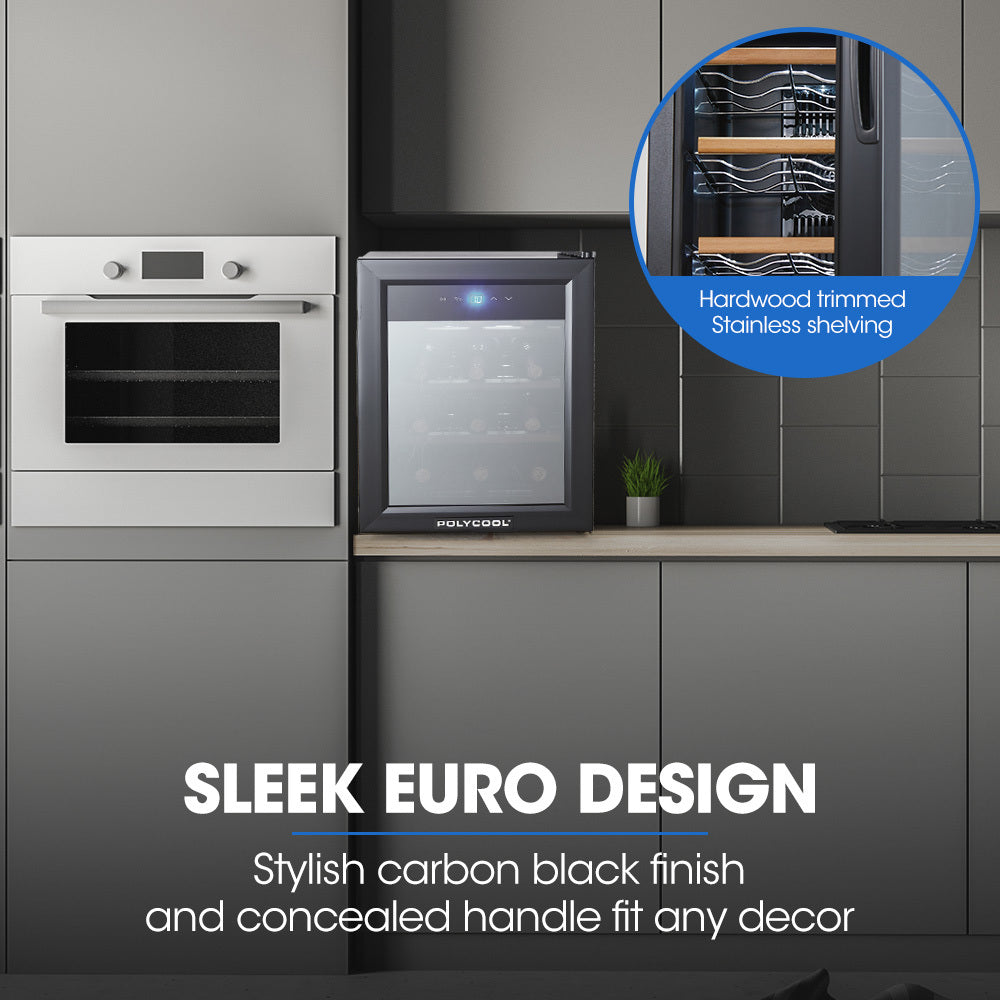 The PolyCool Noir 12 Bottle Countertop Wine Chiller Fridge is everything you need to enjoy your favourite vintages anytime. With an ample 33L capacity, you'll be ready for any special occasion be it big or small, or just wine o’clock on a regular day.