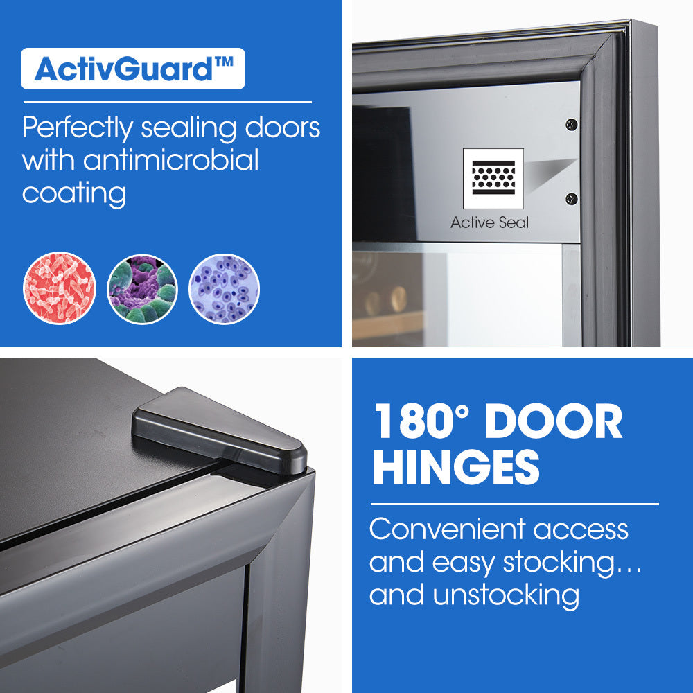 The PolyCool Noir range features ActivGuard™ technology which combines superior sealing doors with an anti-microbial coating to inhibit bacterial growth. The digital touch display makes it easy to adjust the temperature. It also has flash memory to remember your temperature setting should you decide to move your chiller or you temporarily lose power.