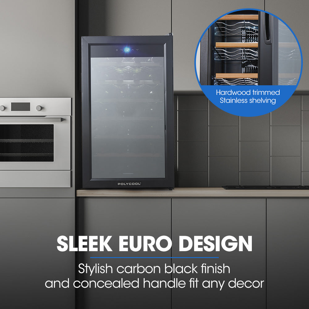 The PolyCool Noir 28 Bottle Countertop Wine Chiller Fridge is everything you need to enjoy your favourite vintages anytime. With an ample 72L capacity, you'll be ready for any special occasion be it big or small, or just wine o’clock on a regular day.