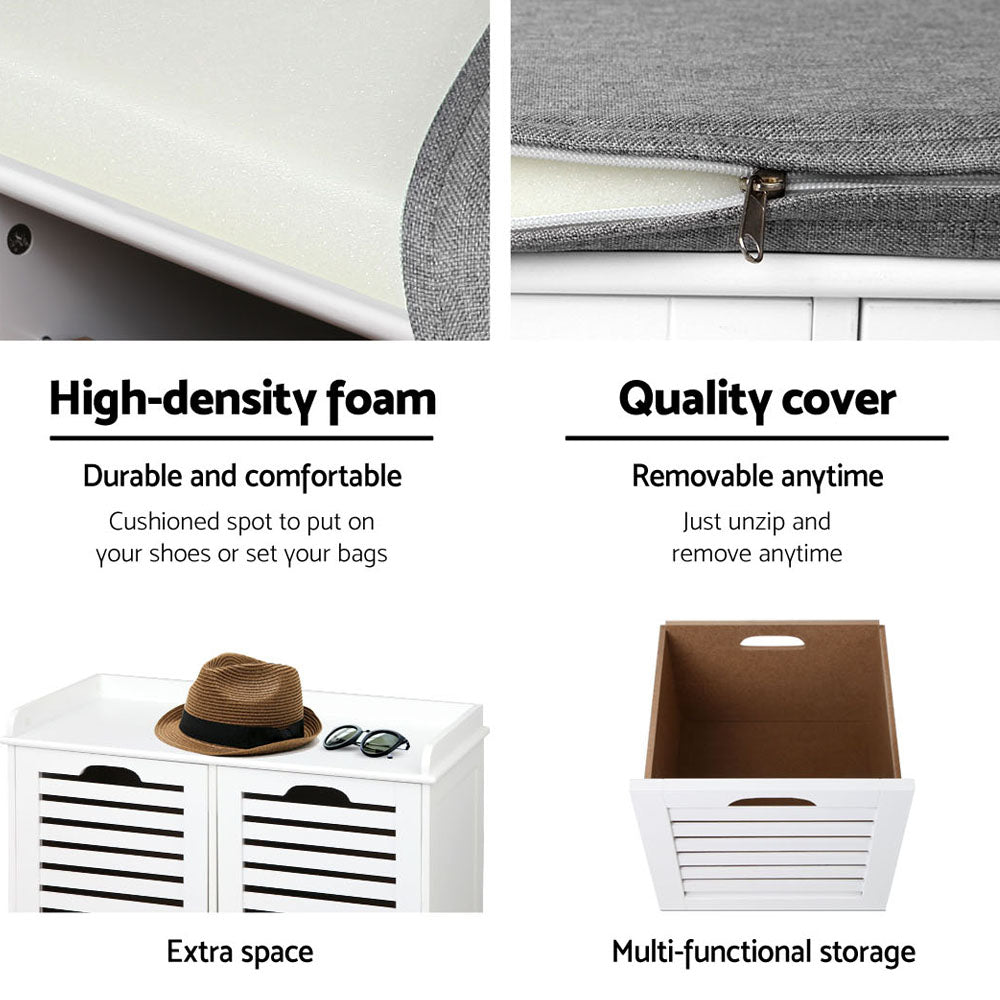 It's a comfy bench. And it's also a stylish shoe cabinet. Our Bench Shoe Cabinet is made perfect for entrance halls where some decor flair is needed.