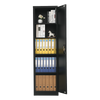The single-door cabinet is made of cold-rolled steel, which provides stability, durability, and resistance over time. It has an opening door and 4 shelves for organizing and storing small and large items.