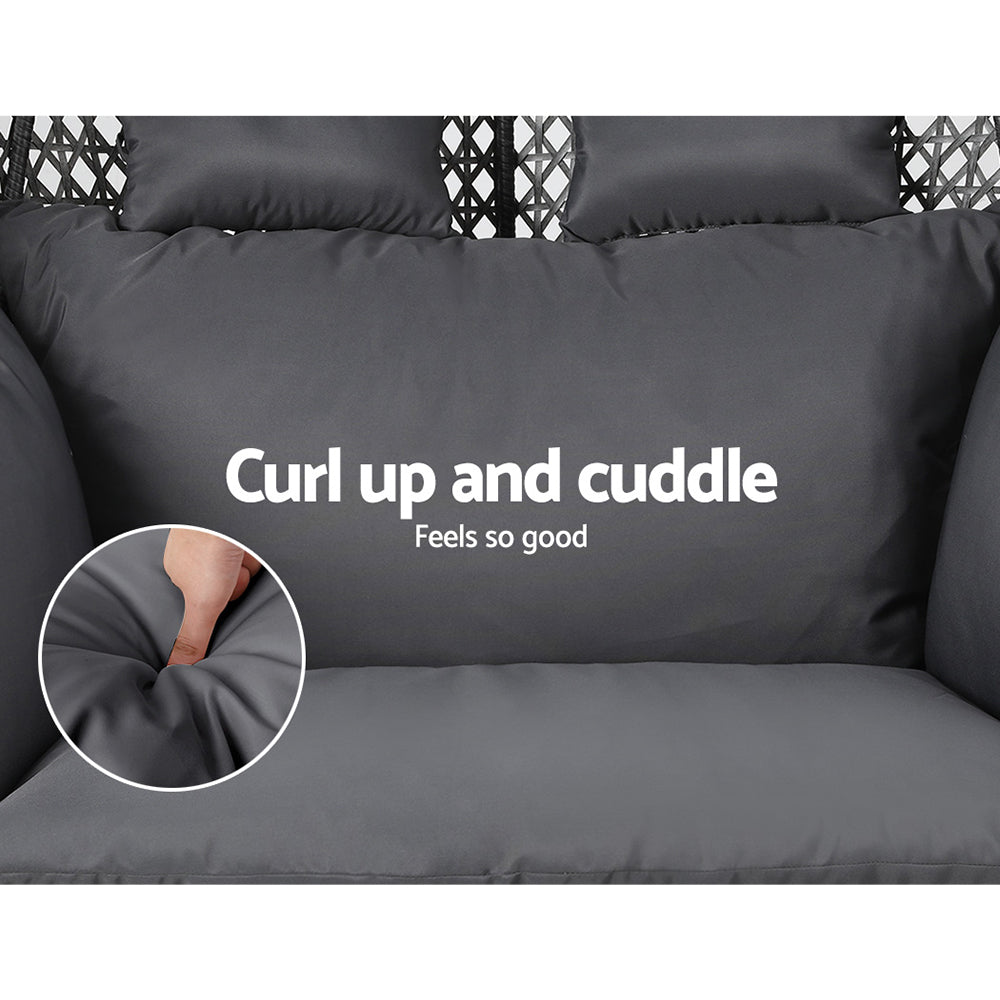 Otherwise known as the hanging egg chair, the Gardeon Hanging Pod Chair is the epitome of ultimate relaxation. Featuring 100% hand-woven UV-resistant wicker, the pod is beautifully handcrafted to give it a cool, exotic appeal that will suit any balcony, poolside, or indoor living space. It has ample space for two with a weight capacity of up to 240kg. Two supporting poles ensure added stability and strength, while the powder-coated steel finish ensures that corrosion will never be an issue. Best of all, the soft, inviting cushion offers plush comfort for day dreamers and leisure seekers alike. Hang cool people! Get your Gardeon Hanging Pod Chair just in time for summer!