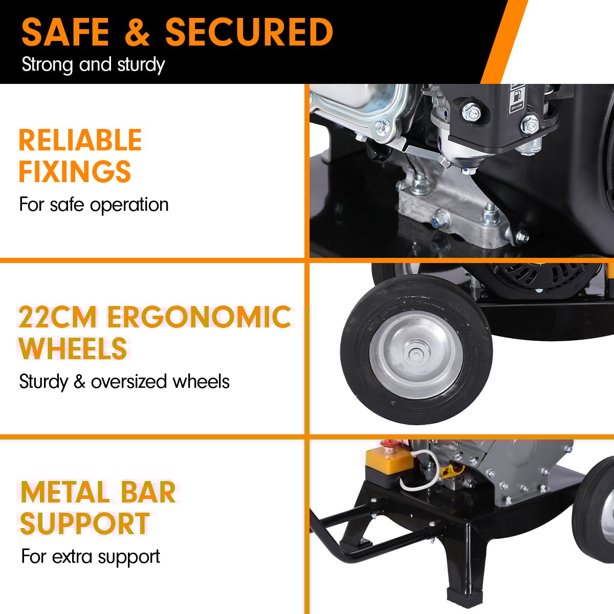 This Ducar wood chipper shredder offers incredible performance in a surprisingly compact package. The unit is powered by an easy-starting and powerful 212cc engine, strong enough to chip branches up to three inches in diameter.