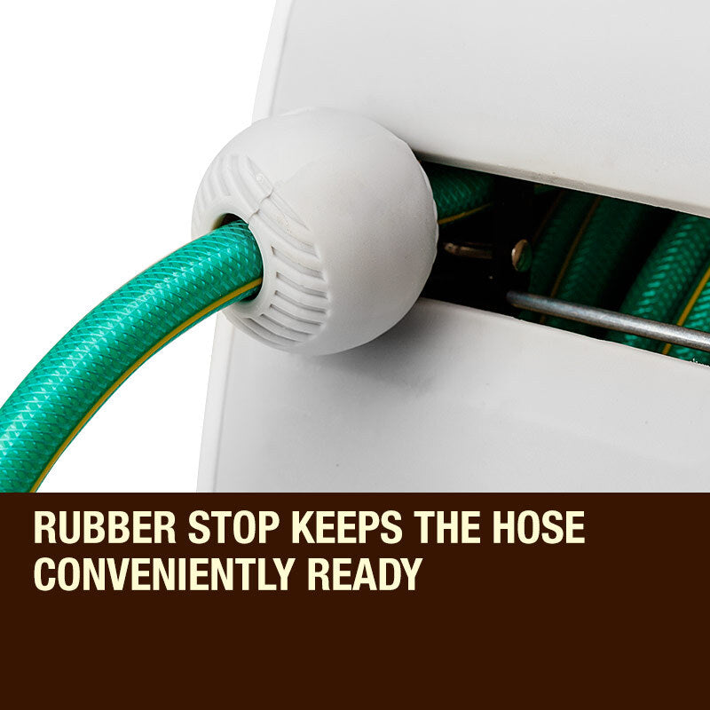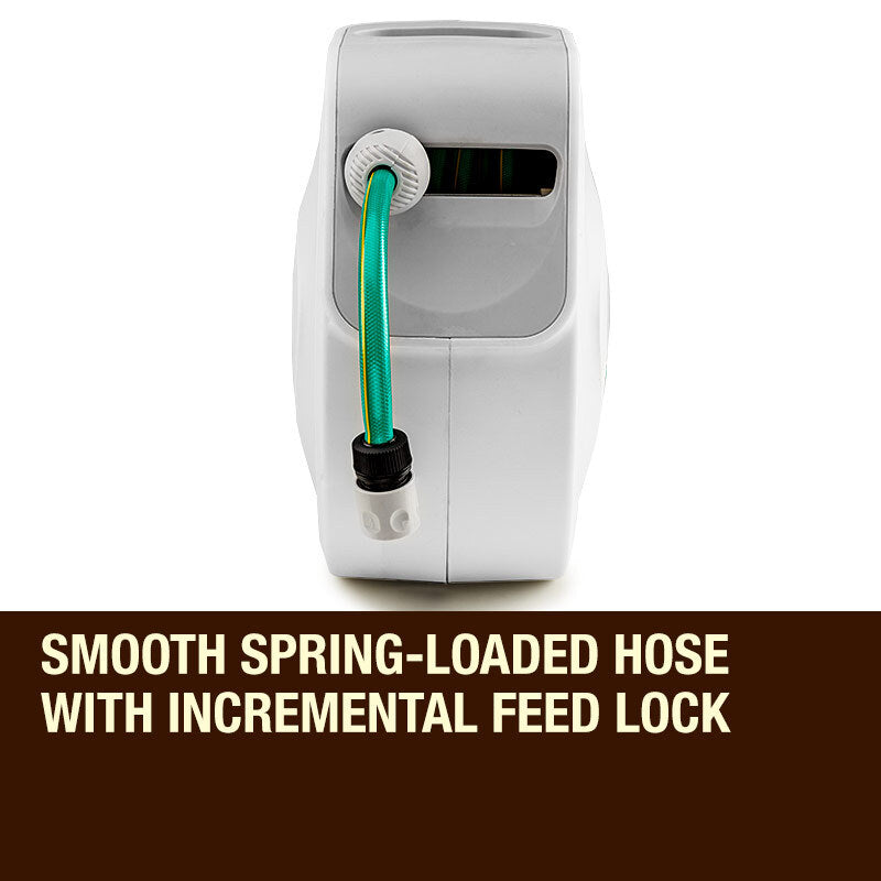 The incremental locking system will provide as much of the hose length as you require and lock off once done extending. When finished, simply give the hose a tug and it will wind itself in. The internal guiding system ensures no tangles occur so you will get an uninterrupted flow of water every time. Maximise your reach with the 180° swivel mount.