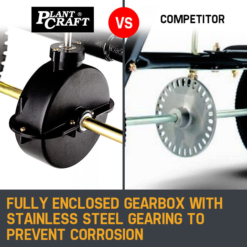 The quad-blade impeller ensures a smooth broadcast, while the handy flow control lever allows for super convenient material output adjustment on the go – it's just a matter of shifting the handle! Furthermore, the Plantcraft spreader is designed to take all the knocks expected from rough terrain, and with rugged 14 inch pneumatic tyres you'll venture to the far reaches of your property. There's also a BONUS UV stabilised rain cover included, so you can get out and sow seeds even when the weather's turned!
