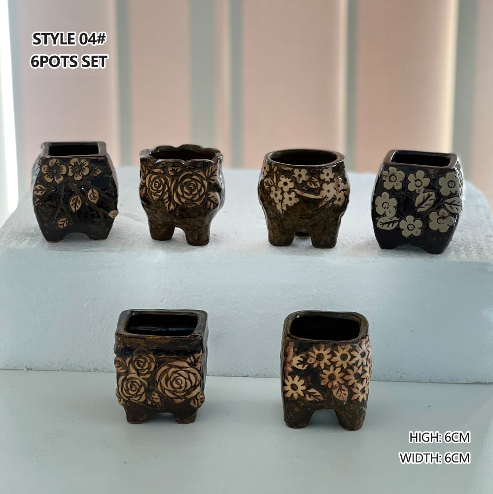 4/5/6 Pots Set Ceramic Clay Pottery Pots Succulent Flower Planter Draining Hole(Style 04# 6 Pots Set)