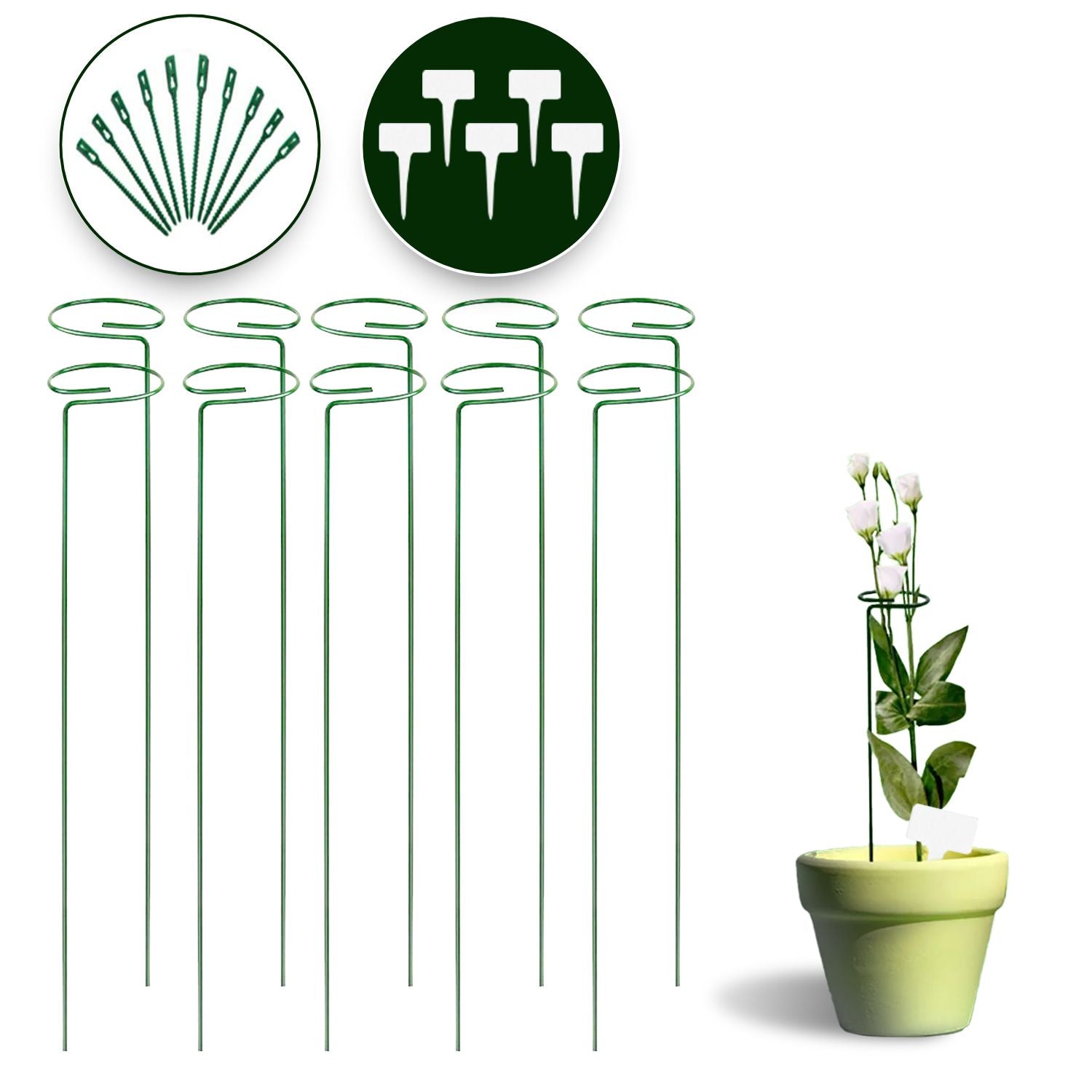 Noveden 10pcs Set Plant Flower Stake Single Stem Support Home Garden Stick Green