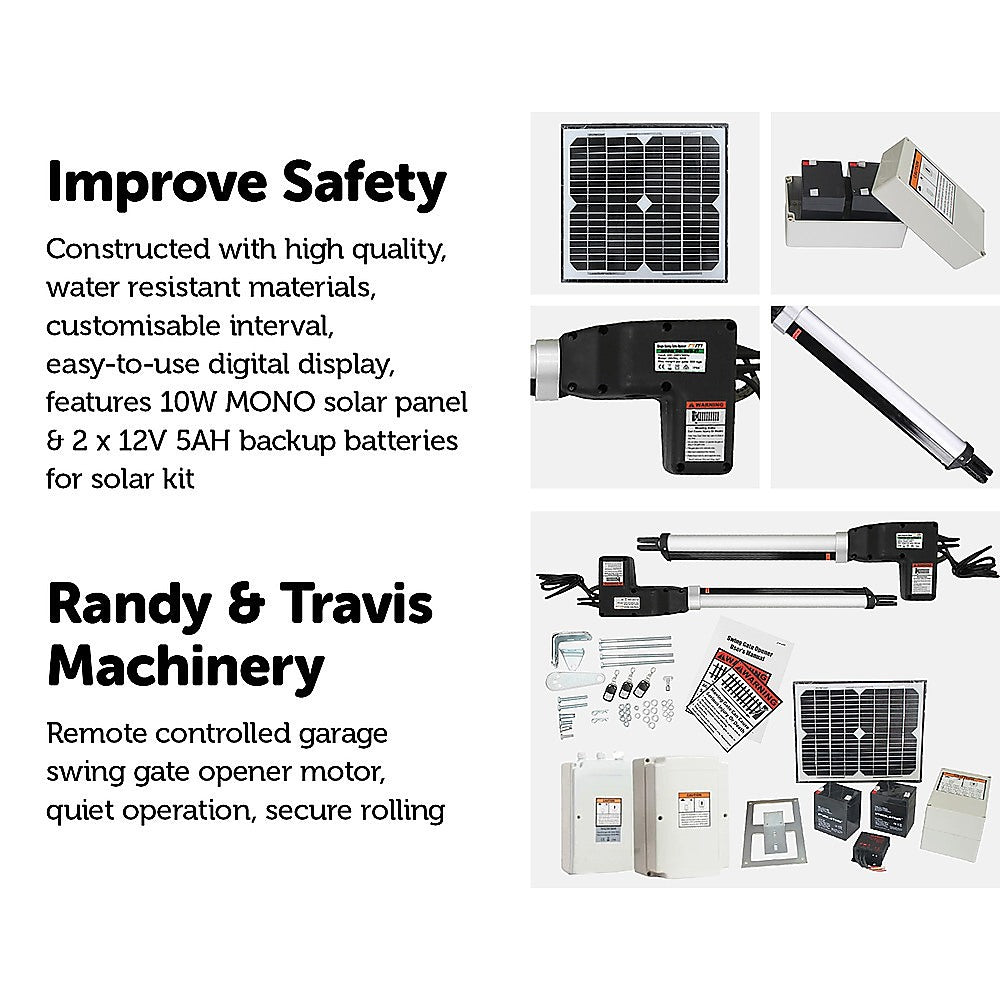 Add a touch of the contemporary to your home or workplace with this Remote-Powered Automatic Swing Gate Opener. This heavy duty, safe-to-use, and easy to install product can softly and smoothly open and shut gates that weigh up to 500kg. It can support a maximum gate width of 5.5m with a gate weight of 200kg.