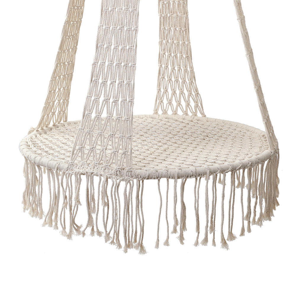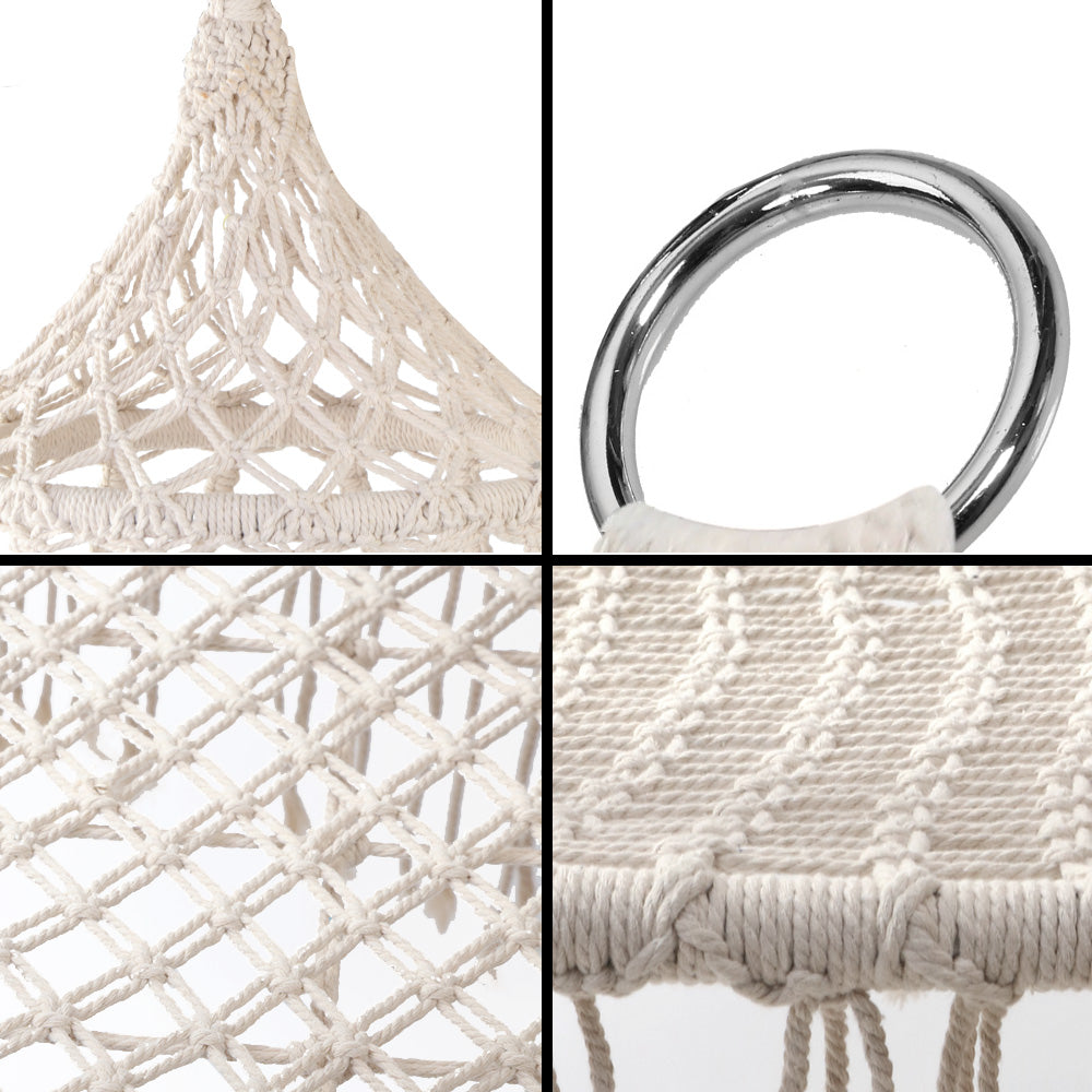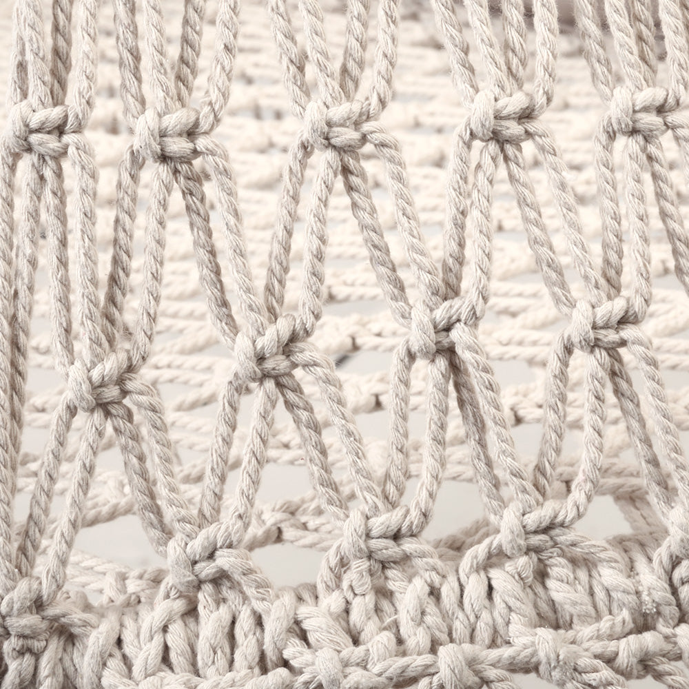 Lazy days and chill out moments. Somehow, they seemed to go better in our beautifully-crafted handmade Hammock Chair. Designed to cup you comfortably, our Hammock Chair is extremely relaxing to sit on with ample support for your back and arms. Built of a sturdy structure wrapped in a mix of polyester and cotton fabric, and adorned with lovely handcrafted tassels, our Hammock Chair has all the right vibes of days spent enjoying your favourite past times suspended in mid-air with nary a care in the world. String it over a tree, mount it at a verandah or install it inside the house, the Hammock Chair hangs well in any place for a very unique décor.