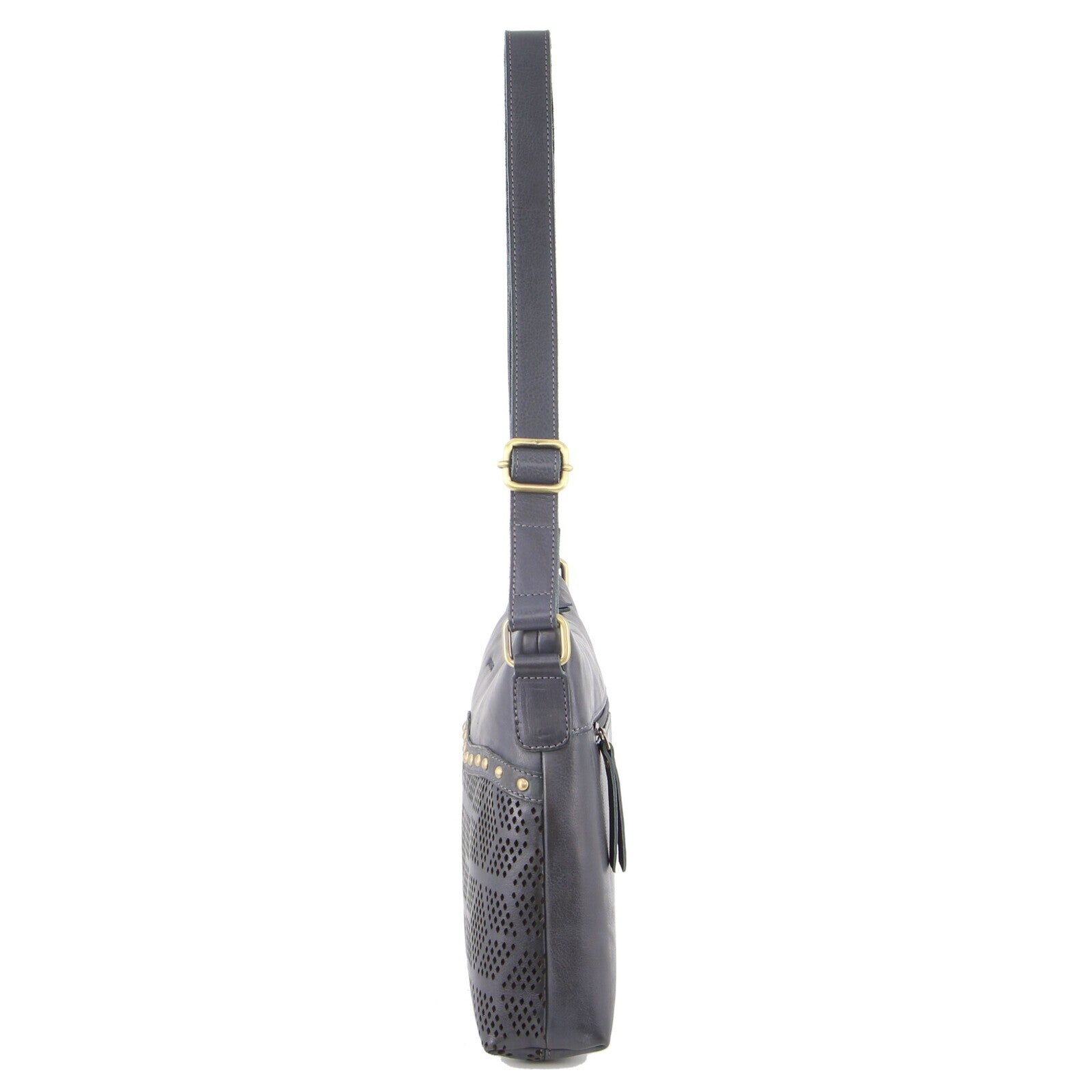 The perfect everyday bag Cross-Body Bag that adds style. This Bag features a dynamic perforated leather design accented with polished heavy metal hardware, adjustable shoulder strap, secure zip closure and internal pockets, making this a great everyday bag.