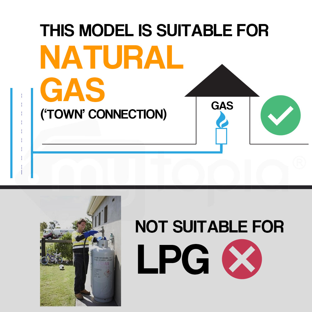 NOTE: THIS MODEL IS ONLY SUITABLE FOR USE WITH A NATURAL GAS 'TOWN' CONNECTION