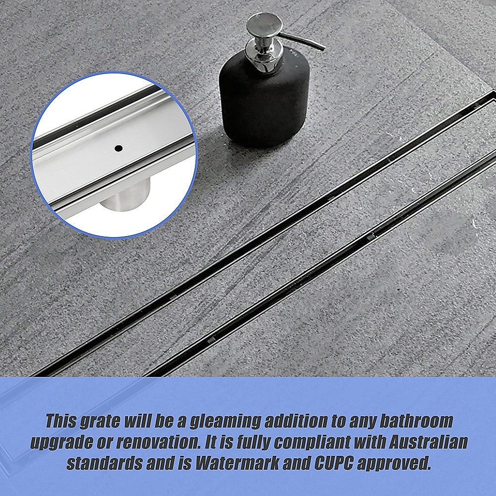 This fully-welded linear shower grate is remarkably easy to install. Cleaning is for easy and convenient , the design forces water to the center drainage outlet. This grate will be a gleaming addition to any bathroom upgrade or renovation. It is fully compliant with Australian standards and is Watermark and CUPC approved.