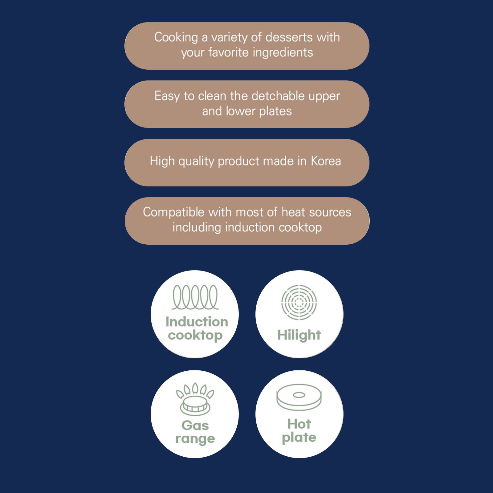 Not just for sweets, this waffle pan also excels at heating up savory wonders. Crafted with quality in Korea. Safety is a priority with its secure latch-on handle. Experience the joy of cooking and the satisfaction of homemade goodness - order your versatile waffle pan today!