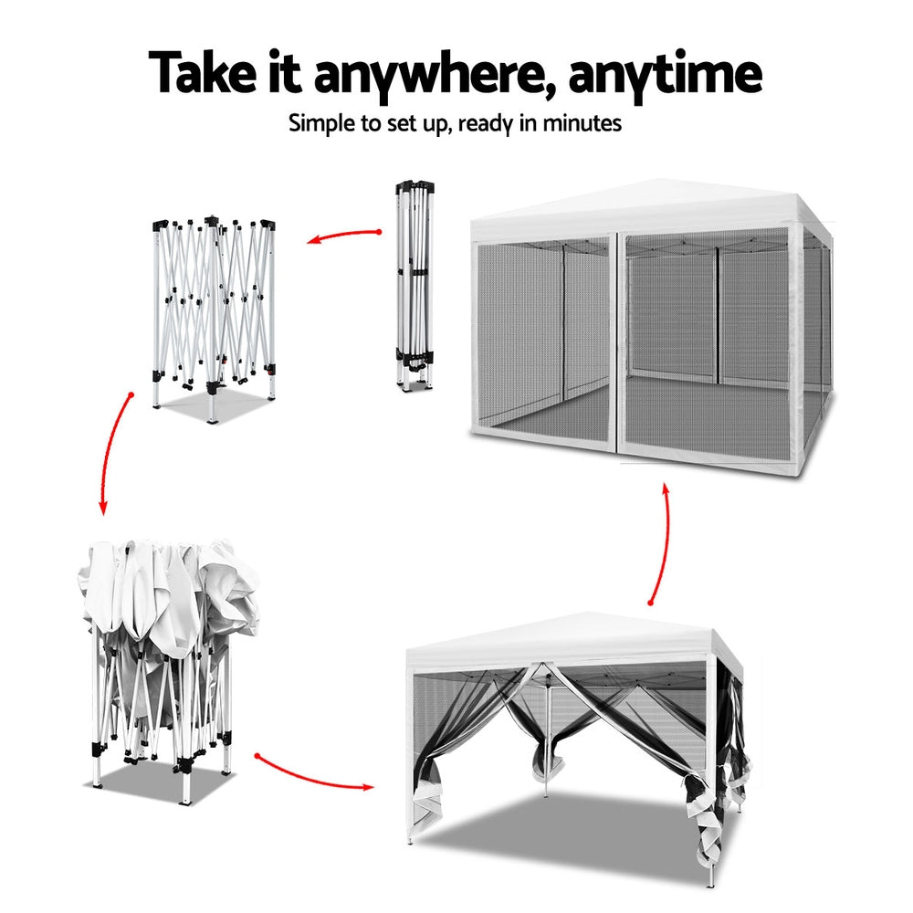 Instahut Gazebo Pop Up Marquee 3x3m Wedding Party Outdoor Camping Tent Canopy Shade Mesh Wall White