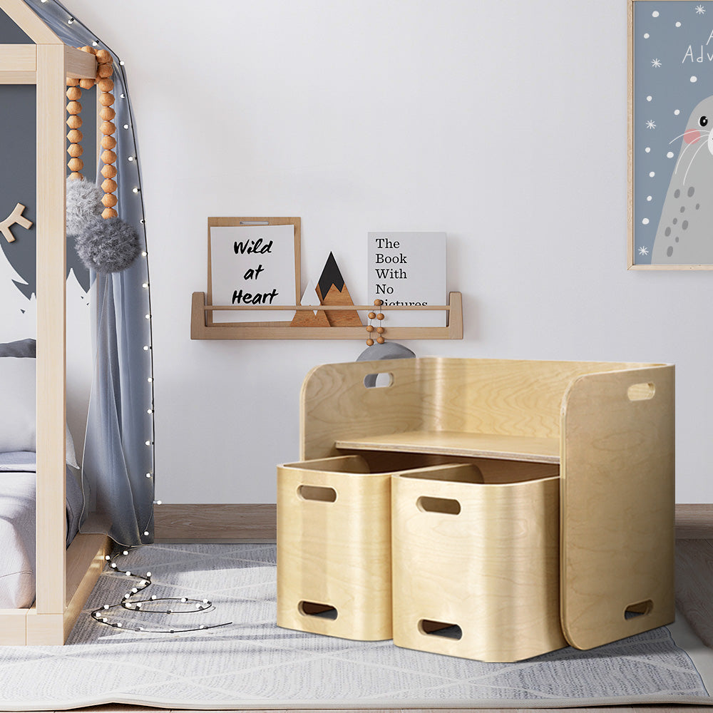 Give your kids they need to study, create and have fun with our compact Kids Table and Chairs Set. Made of birch plywood, the ensemble is strong and sturdy and designed to be child-safe with round corners, easy-grip handles and smooth surfaces. Perfect for reading, writing, art and craft or even having meals, the table has a weight capacity of 50kg. Likewise, the chair can take up to 50kg in weight and are made at just the right height and width for comfortable sitting. Not least, the set is easy to clean and maintain with its non-toxic finish. Its unique design also enable the set to be use in a variety of ways, such as a side table, storage shelf or even as a TV stand.