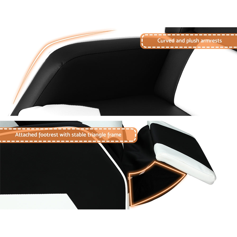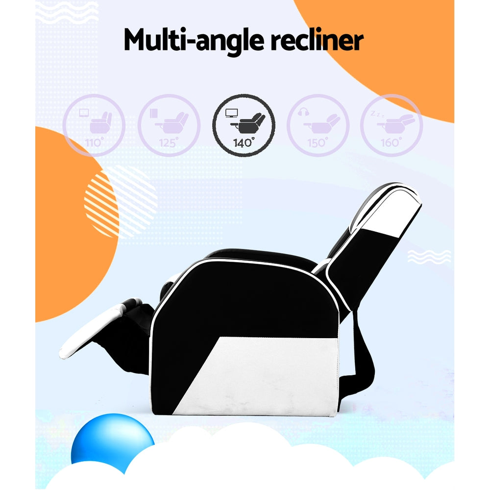 Give your kids their own private space where they can sit back and relax, read books, watch TV, play games, and eat snacks. Our Keezi Kids recliner chairs will make your little ones happy because they will be able to have a good time reclining in their very own recliner chair as you do. It makes a great gift that they can boast about among their friends. Upholstered in quality PU leather, our kids recliner chair features a modern design with impressive features. It offers a comfortable seat with soft padded and adjustable backrest and plush armrests. It comes with a headrest, lumbar cushion and an attached footrest. The triangle structure ensures stability, and the sturdy metal frame ensures durability and longlasting use. Our kids recliner chair also has an adjustable recline between 110°to 160°for your comfort and convenient sitting. Furthermore, its lightweight design makes it easy to move, and the PU leather upholstery makes it easy to keep clean. Without any hesitation, get our Keezi kids recliner chair. Your kids will love and cherish it for many years.