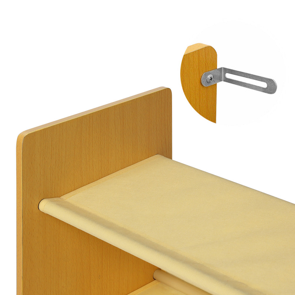 Keep your kids' room clutter-free with our Keezi kids' wooden toy box. It’s a perfect storage solution that ensures your space remains neat and tidy with all your kids' toys, books, and other stuff hidden inside it. Our wooden toy box is crafted from premium particle board that ensures sturdiness, ultimate durability, and strength. It comes with nine non-woven foldable boxes with cardboard bases in three different sizes. The boxes are spacious enough to accommodate all your kids' things. They come in four different popping colours for a colourful and vibrant room ambience - red, yellow, blue, and green. You can even remove them when not required. The wooden frame flaunts natural wood shade that will suit any home interior. Additionally, our Keezi wooden toy box boasts hassle-free assembly. You can install it minutes. It comes with wall mounting option to prevent tripping, and the non-toxic paint finish and safe and smooth rounded corners make it safe for kids to use. The wooden toy box features ideal height that makes for easy keep and reach. All of these amazing things make our wooden toy box a mandatory piece of furniture in your kids' room or playroom. Purchase it today.