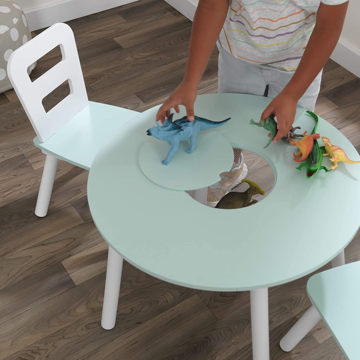• Extra Helpings: As an added bonus, the circle in the middle of the table lifts up to reveal an attached mesh bag for storage. Keep play food or dishes, art supplies, toys and more here!