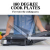 The cook plates open out to double your cooking area to 650 square centimetres! Breakfasts can be served nice and hot after you’ve fried your bacon on the ribbed grill plate, at the same time the eggs cooked on the flat griddle plate.