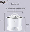 Kylin Electric Slow Cooker Stainless Steel Ceramic Pot Steamer 2.2L With 3 Containers