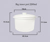 • 3.5L for outer stainless steel pot, one large ceramic inner pot with 2.2L, two small inner pots with 0.65L