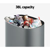Keep your home clean, tidy and germ-free with a Devanti Motion Sensor Bin. Activated by just the wave of your hand (within a 20cm range), the motion sensor bin makes it easy to dump your trash cleanly and hygienically. With a large 38L capacity, you won't need to clear your bin immediately to make room for more trash. The fingerprint-resistant black steel surface keeps your kitchen looking cool and sleek. No more worrying about the bin liner moving out of position with the convenient bag retaining ring. The soft opening and closing make the bin completely noise-free. The lid also prevents any odours from getting out, so you can dispose of your trash hassle-free. Powered by four AA batteries, you can turn on the power switch and enjoy using the bin. Fight common kitchen bacteria and keep your home clean and clear with a Motion Sensor Bin from Devanti.