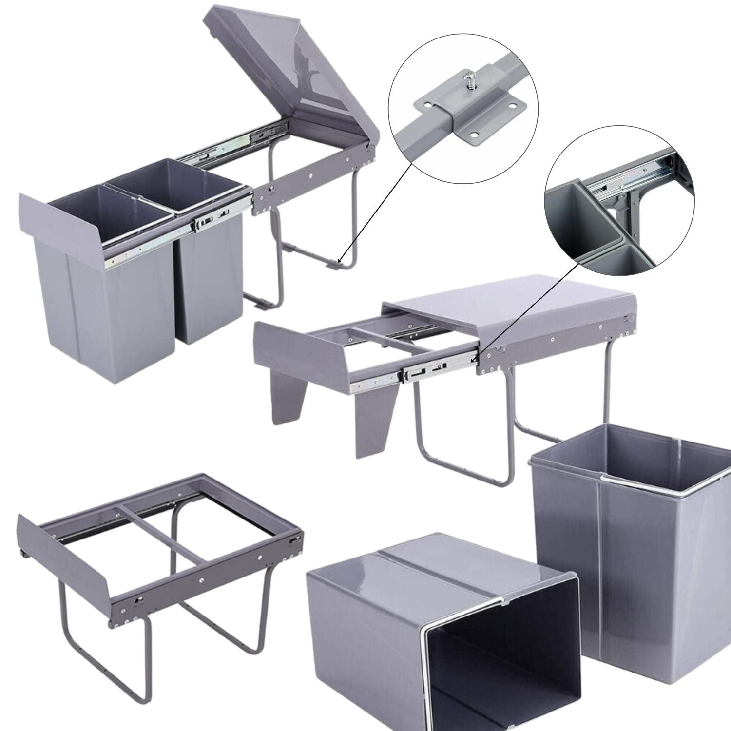Gominimo 2x15L Kitchen Twin Pull Out Bin (Grey)