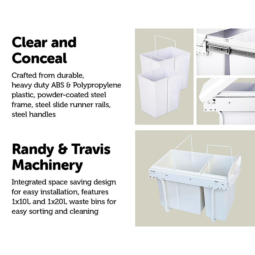 Tired of the rubbish bin in the corner of your kitchen? This convenient pull-out rubbish bin from Randy & Travis Machinery fits neatly inside your cabinetry, hiding your rubbish while giving you more floor space in your kitchen.