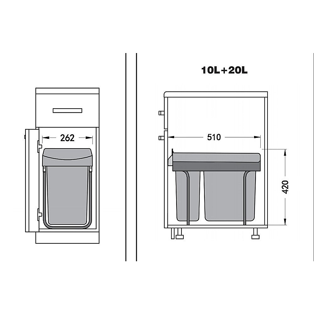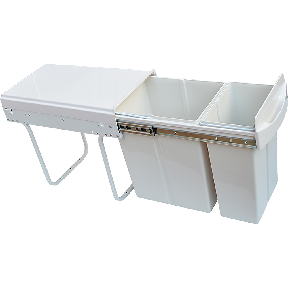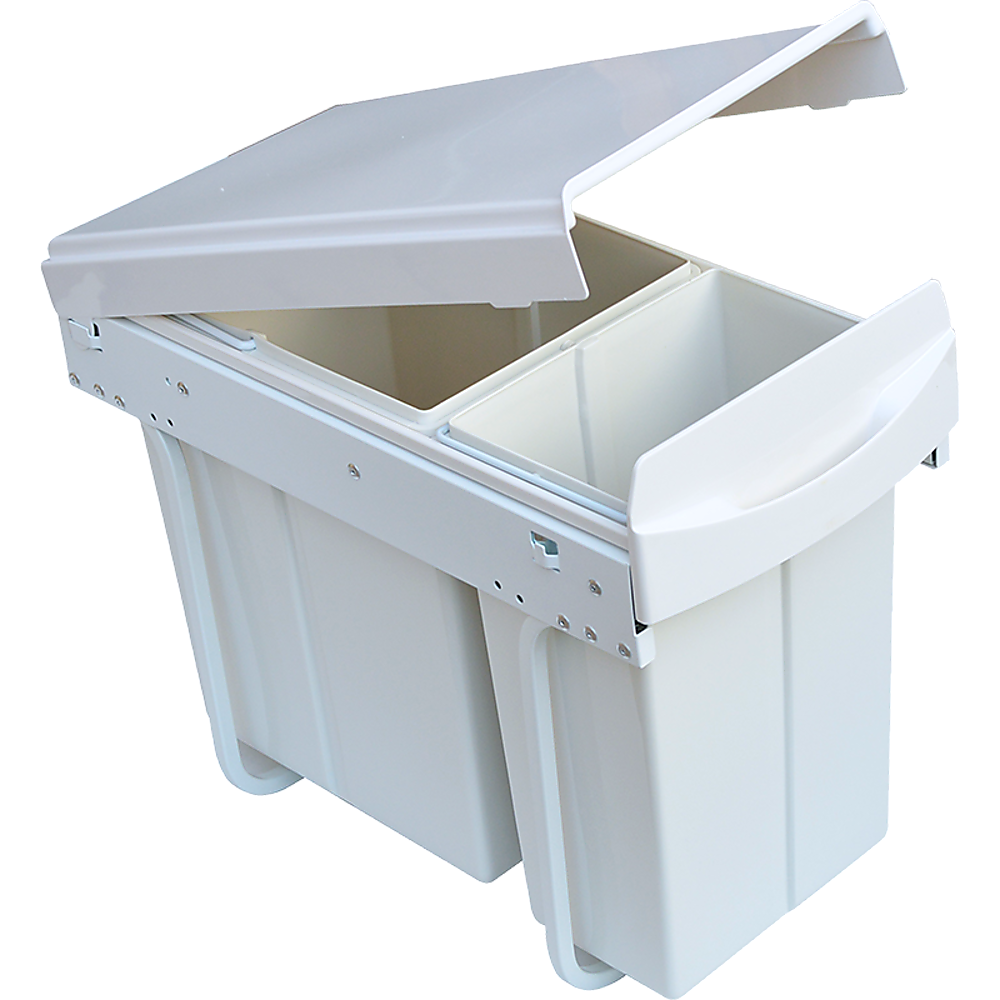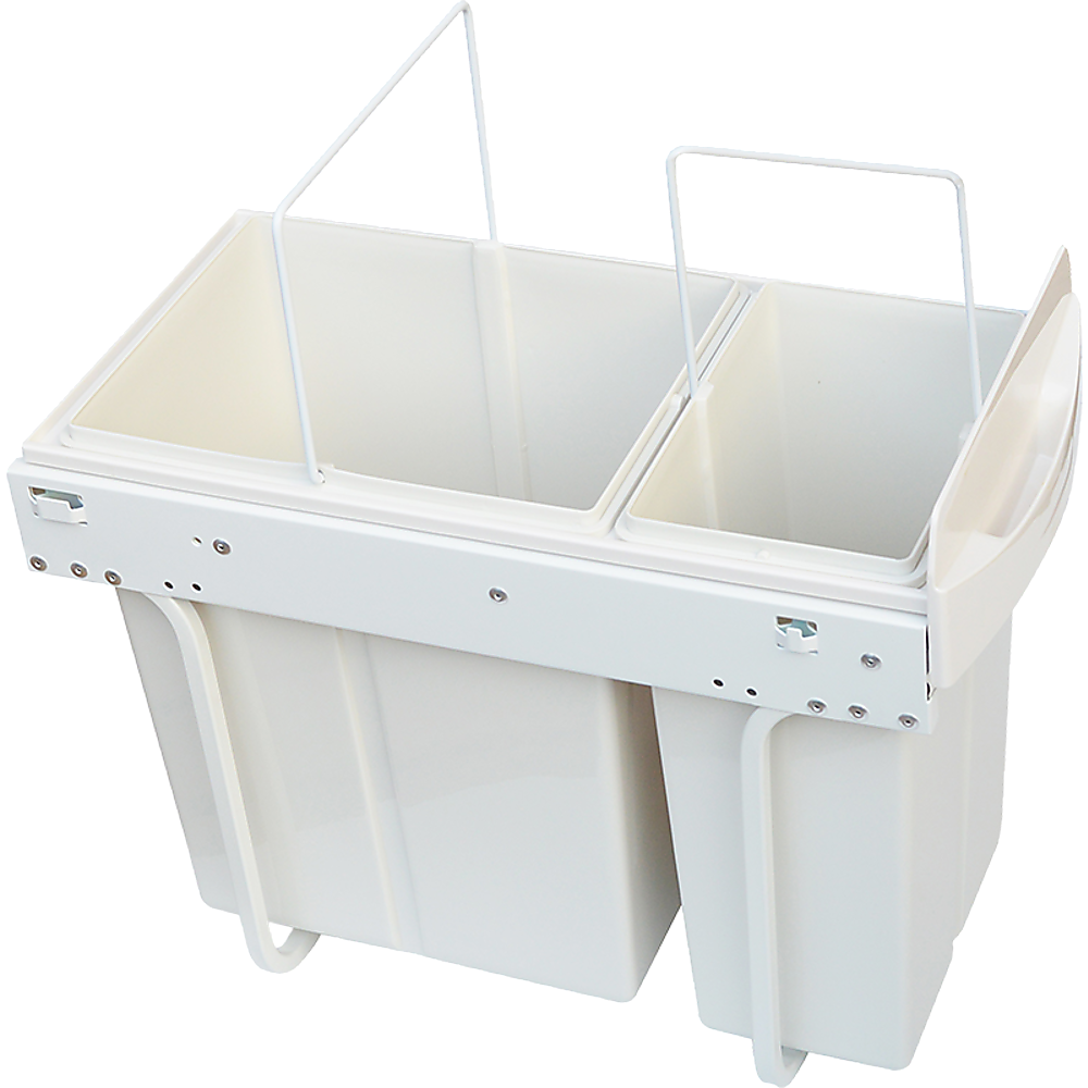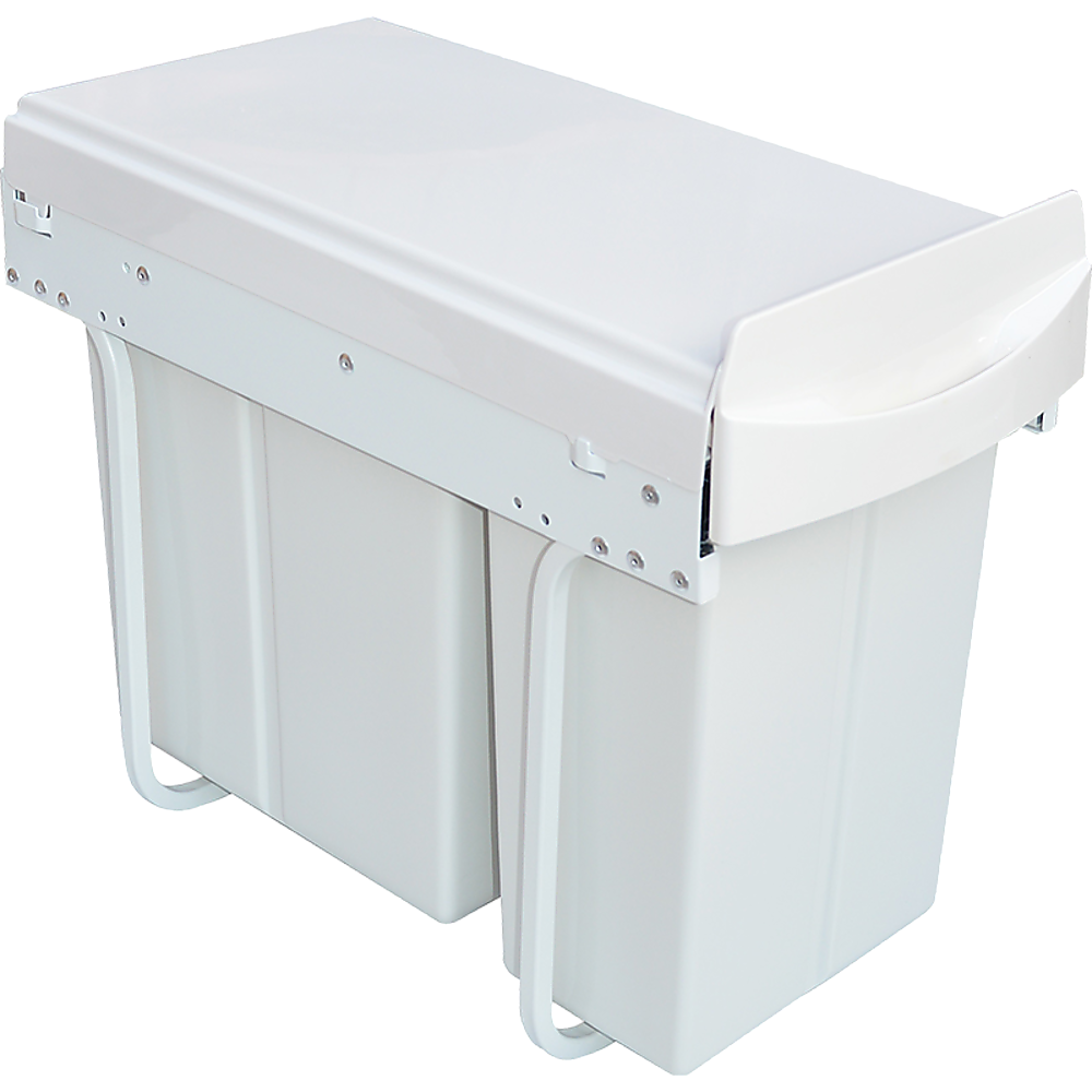This 10-litre plus 20-litre size is perfect for 300-millimetre cabinets. Made from white plastic for easy cleaning, this bin features a metal frame for sturdiness and durability. Two bins allow you to sort your rubbish for recycling or by type.