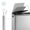 What You Get: A dual trash can with two 30L bins, 15 rubbish bags, plastic inner buckets, and soft closure mechanism for easy waste disposal