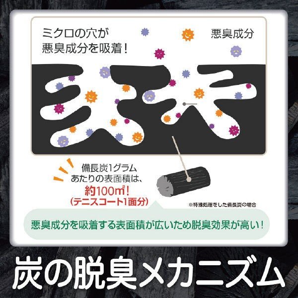 Strong deodorization with our original jelly-like charcoal (reinforced binchotan charcoal + activated carbon).