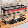 Organise your kitchen and save on space with Randy & Travis Machinery's over-sink dish drying rack. A two-tier rack made from water-resistant coated steel, the rack tidily stashes crockery, cutlery, detergent and cleaning materials, as well as incorporates a compartment for fruit and veg storage.