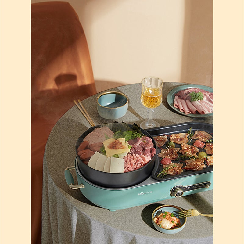 This Bear Electric 2 In 1 Multiple Purpose is a highly functional addition to your home that allows you to enjoy hot pot and bbq at home with your partners, family, or friends. Two pots are controlled by different panels. Different levels of heat choice, accurately help you cook your food. Up to 1600W of heat power will not let you wait for too long.