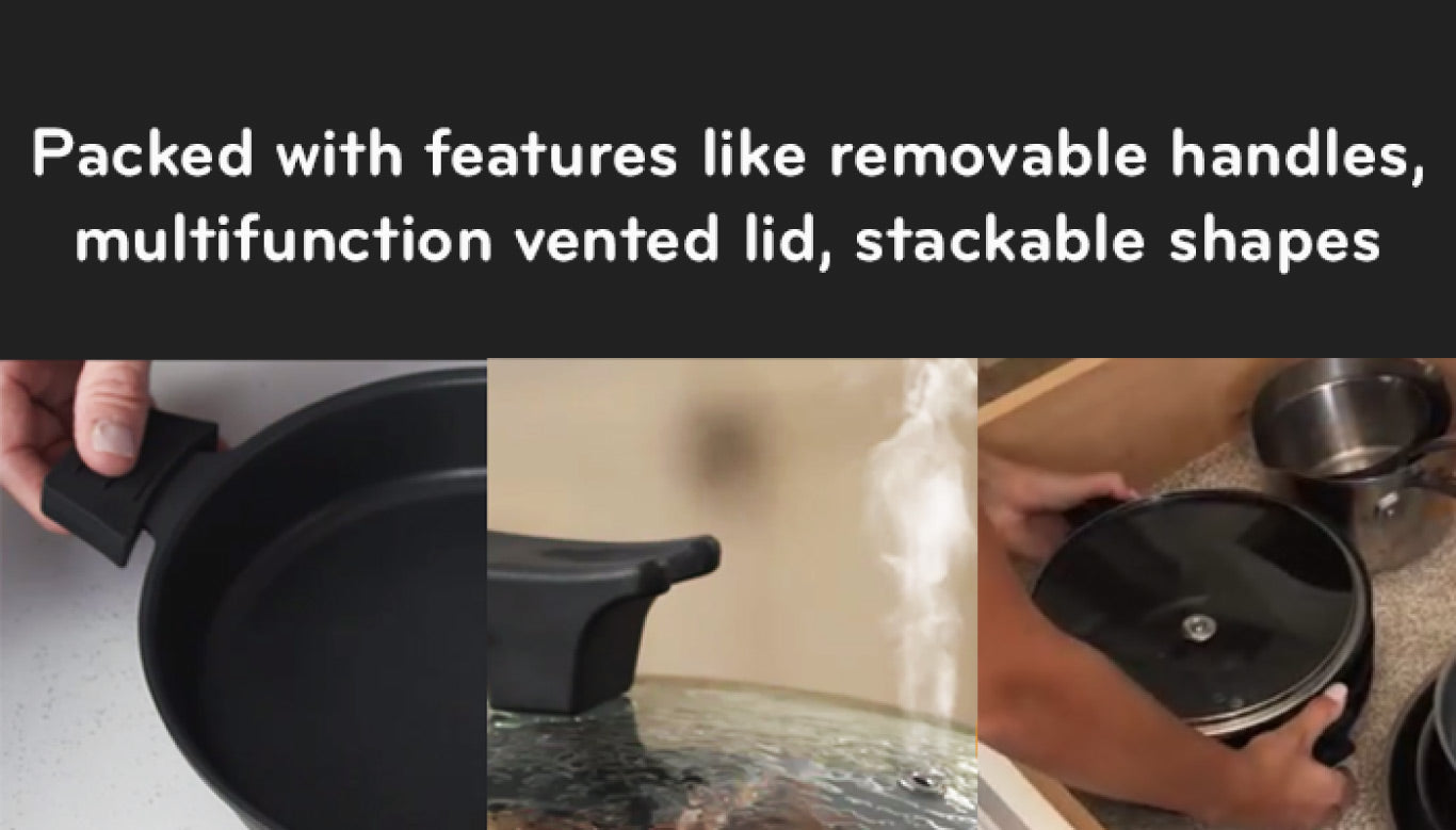 The Do-Everything Pan. Flexibility from stovetop to oven to table. Smart stacking design for compact storage. Die-Cast/Non-Stick for superior performance. Removable handle, vented lid & more advanced features.