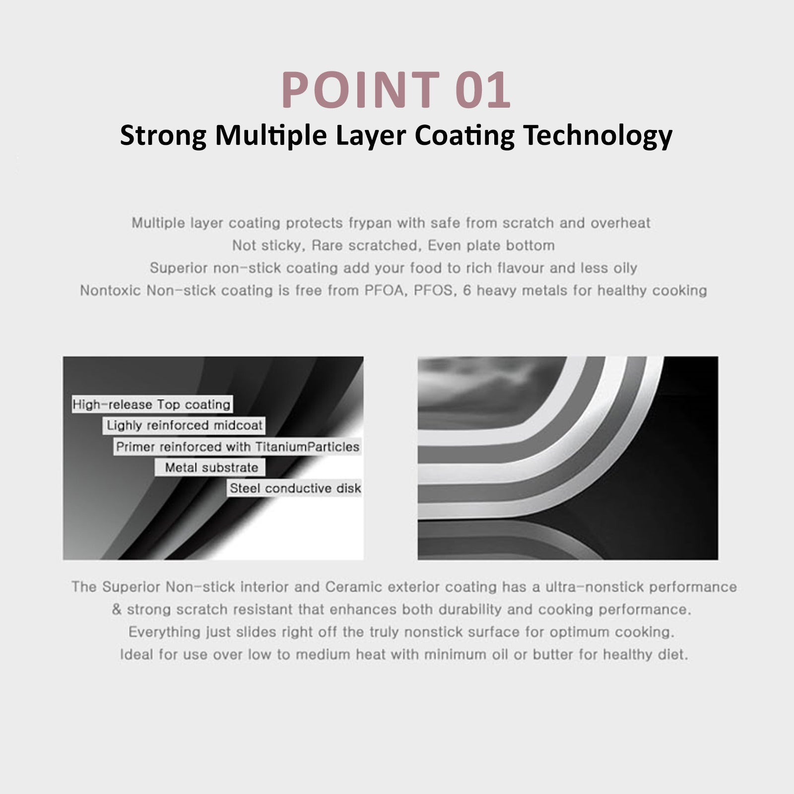 NON-TOXIC AND INDUCTION COMPATIBLE - Nontoxic eco-friendly ceramic coating that is PFOA free for healthy cooking. The frying pan is made with a flat bottom which allows it to be placed evenly over the heat source and is suitable for use on most stovetops including induction, gas, halogen, ceramic glass, etc; Dishwasher safe.