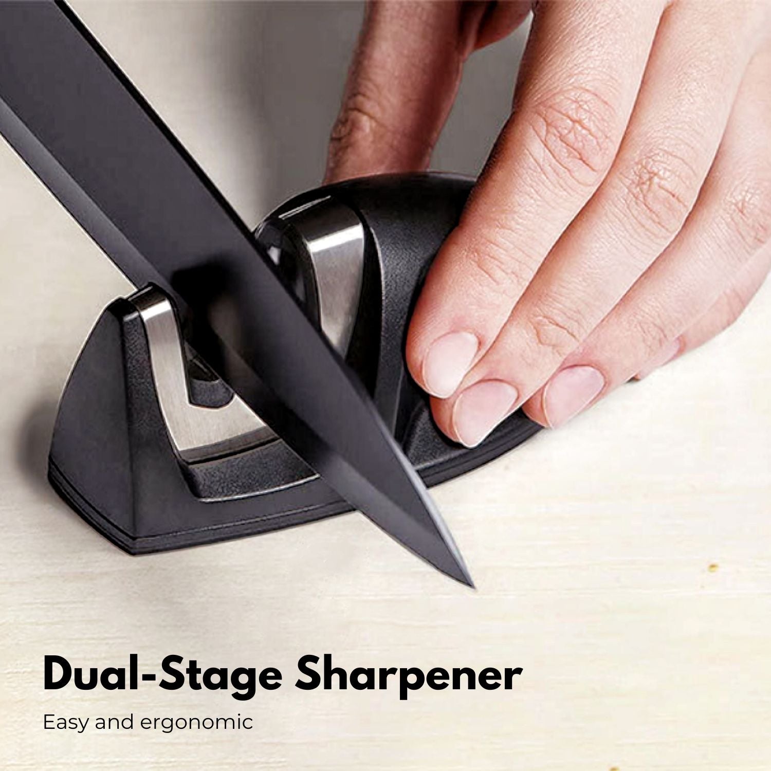 Constant Knife Sharpness: With a two-stage knife sharpener included, your knives will always be razor-sharp, making food preparation effortless and safe.
